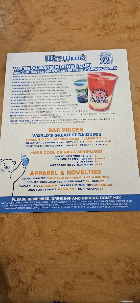Welcome to Wet Willie's, your go-to destination at 200 Dauphin St, Mobile, AL, where flavor meets fun! This vibrant venue not only excels in an impressive array of frozen daiquiris but also boasts a thoughtfully curated menu perfect for those seeking delicious bites. Guests rave about the Spinach Artichoke Dip and Buffalo Wings, which are notably baked for a healthier twist. The selection extends to mouthwatering mains like the All American Burger and Willie’s Gumbo, appealing to a diverse palate. Enhancing the experience is the lively atmosphere complemented by friendly staff who ensure your visit is memorable. You’ll find something for everyone, from freshly grilled shrimp to tasty sides like Tortilla Chips and Queso Dip. Whether you're indulging in a casual meal or refreshing drinks, Wet Willie's is a gem in Mobile that combines great food with an inviting ambiance.